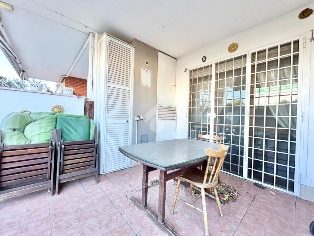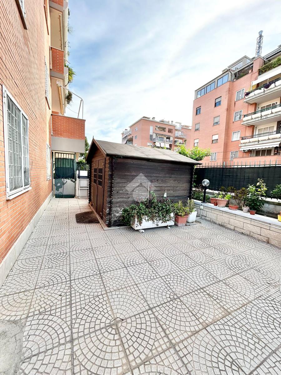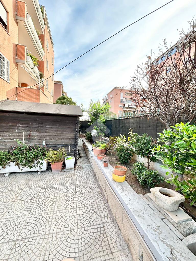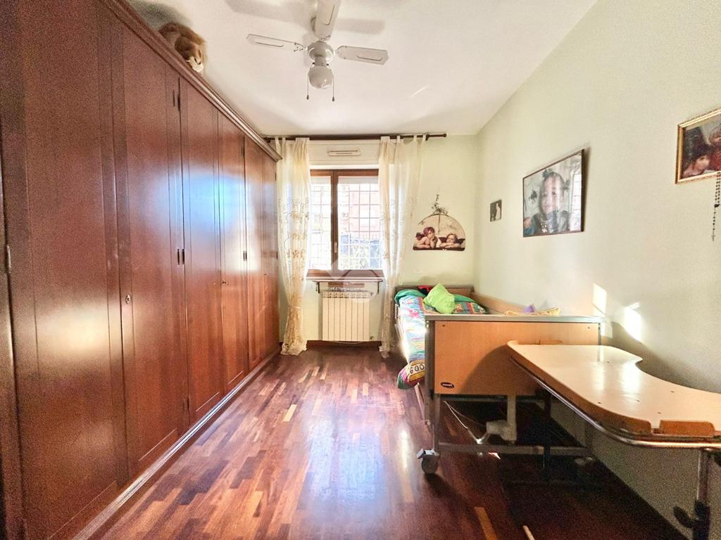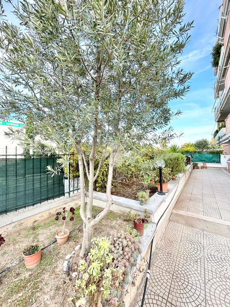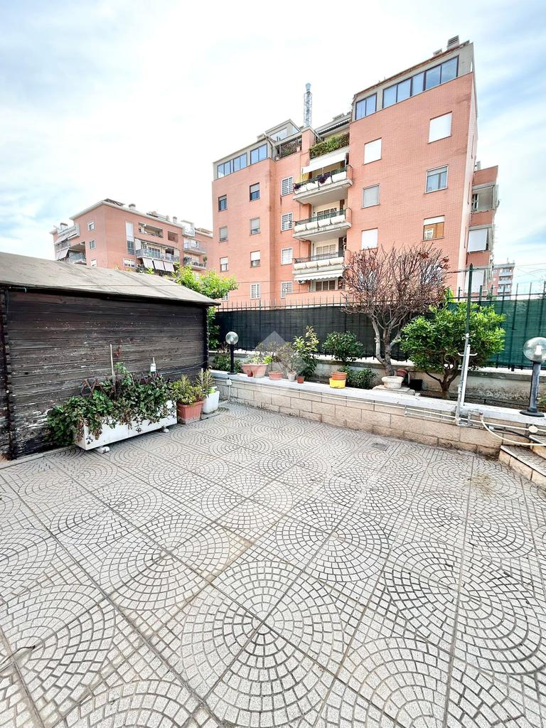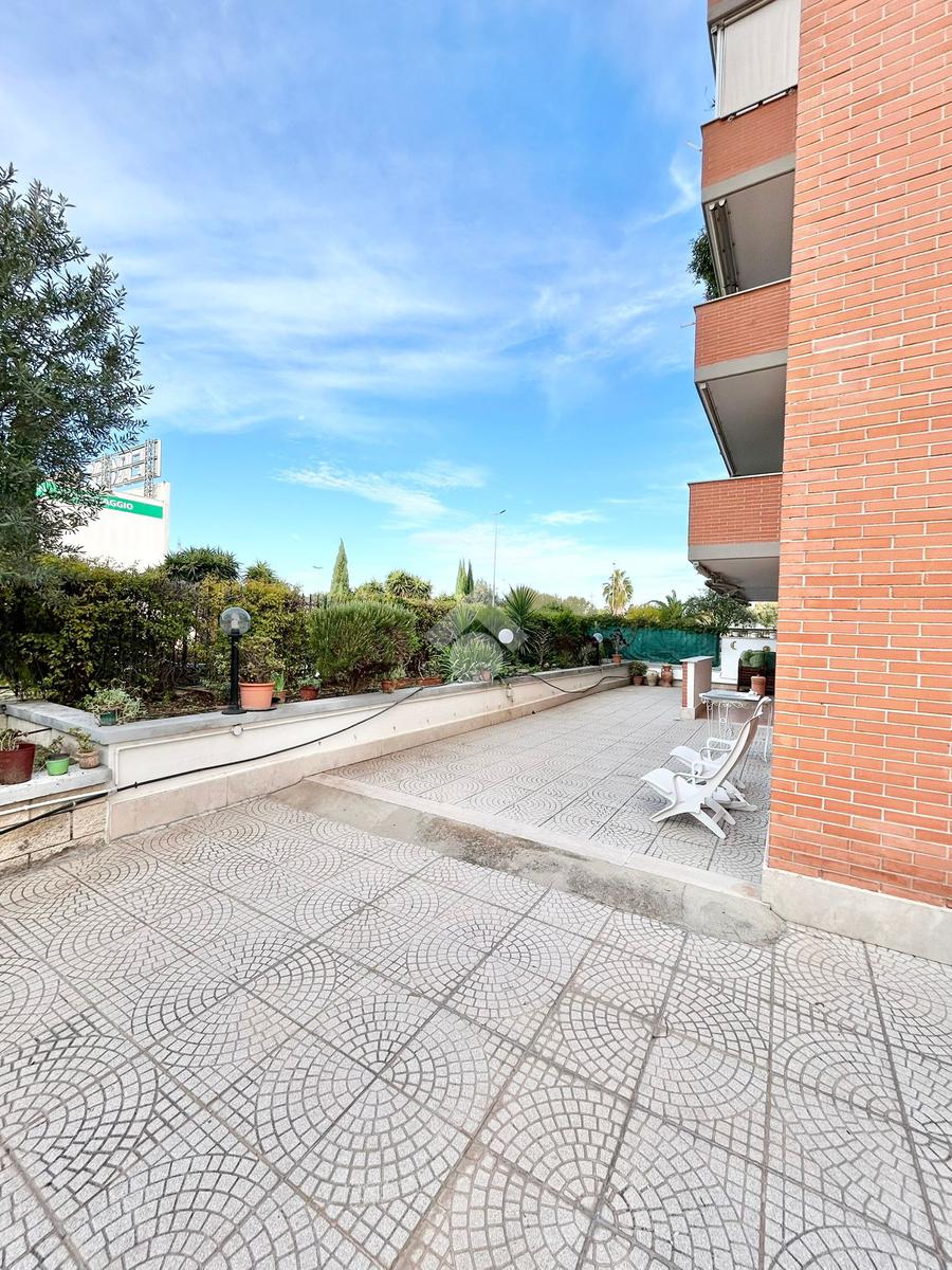 FONTE LAURENTINA, piena proprietà, in Via Signorini, costruzione 2005, disponiamo di un appartamento al piano terra con giardino quasi totalmente pavimentato di . 300 mq. L'immobile ha un doppio ingresso (uno dal portone ed uno dall'esterno), è disponibile immediatamente ed è composto da un soggiorno ampio, una cucina abitabile, 2 bagni e due camere da letto. Il riscaldamento e il condizionamento sono autonomi. La casa è provvista di tende da sole e di grate. Le pavimentazioni sono in cotto ed in parquet. COMPLETANO LA PROPRIETÀ UN BOX AUTO ED UNA CANTINA.